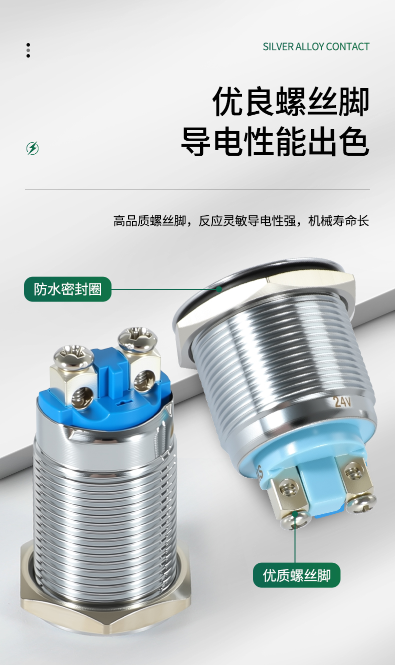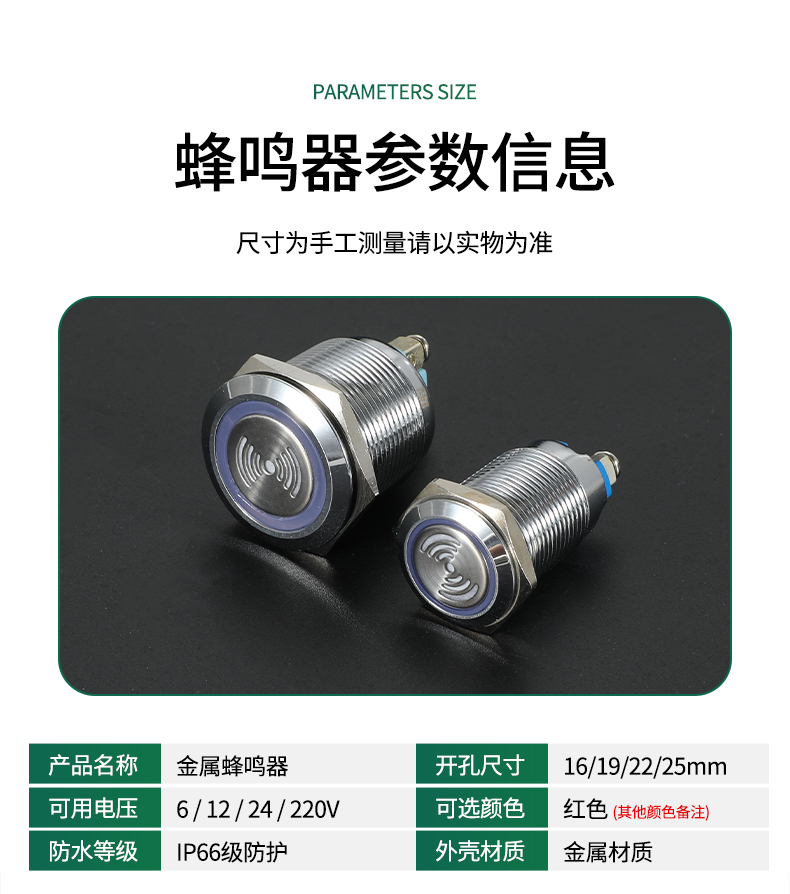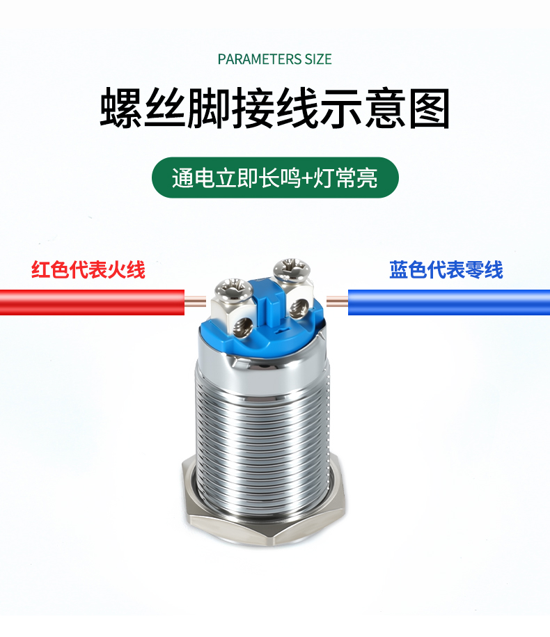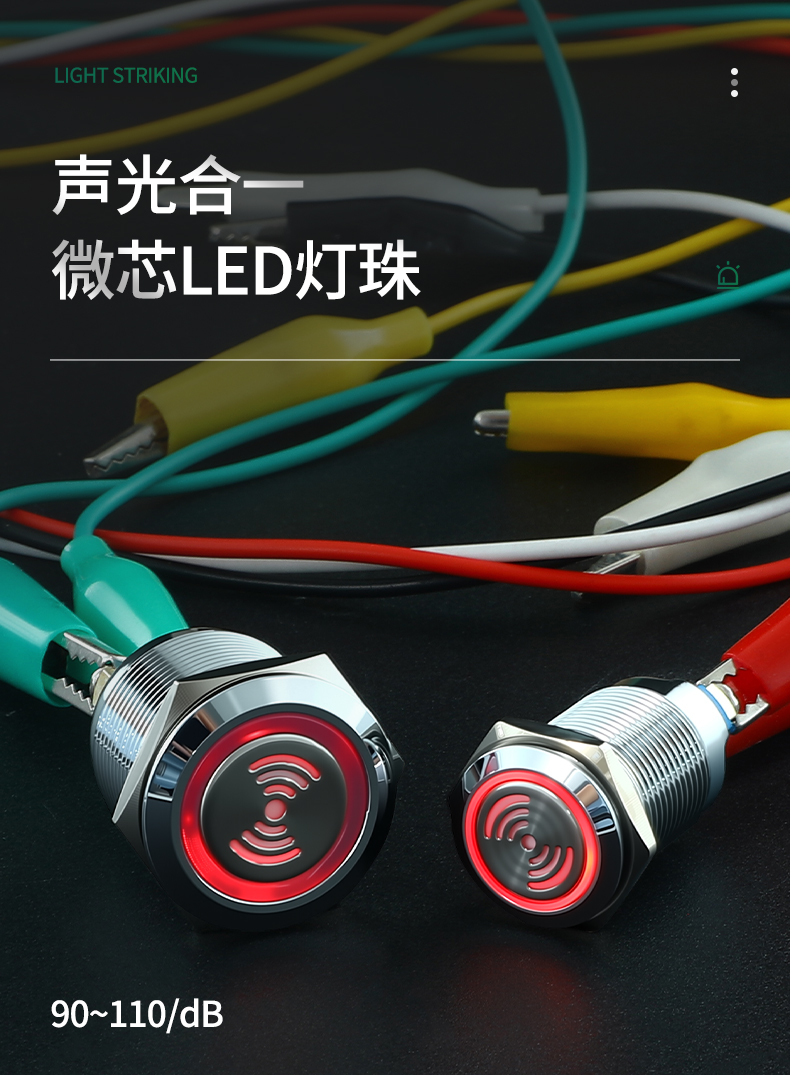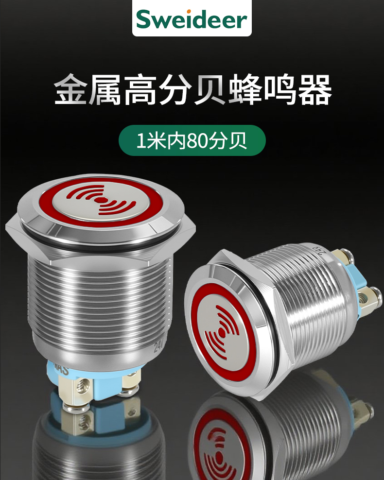 Sweideer 16/19/22mm金属防水蜂鸣器螺丝脚间断闪亮声光报警器12V